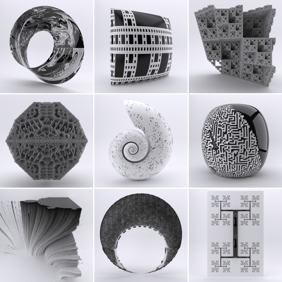 Visualizations of iconic structures in mathematics and computation, created with Houdini and Redshift.